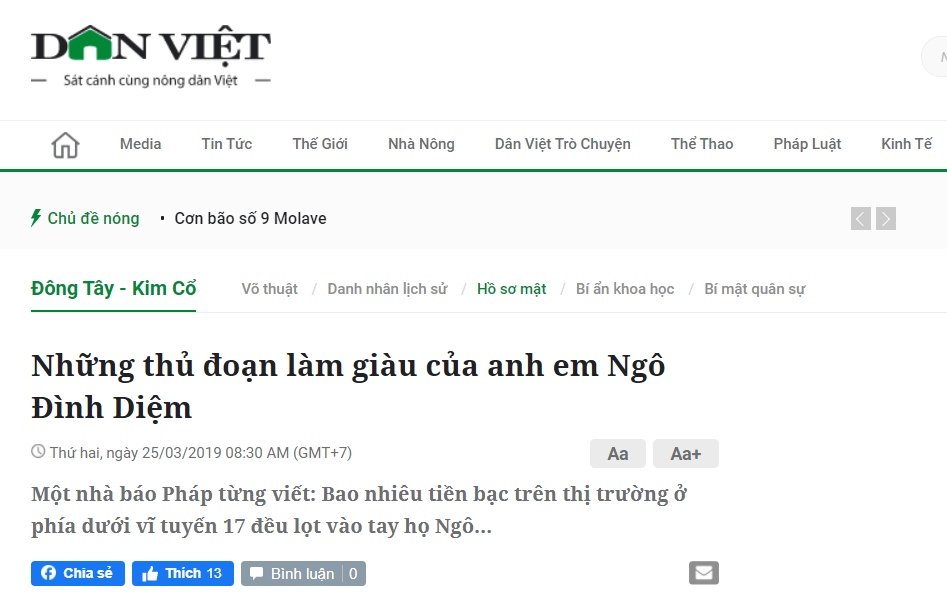 Trong bài “Những thủ đoạn làm giàu của anh em Ngô Đình Diệm”, có đoạn: