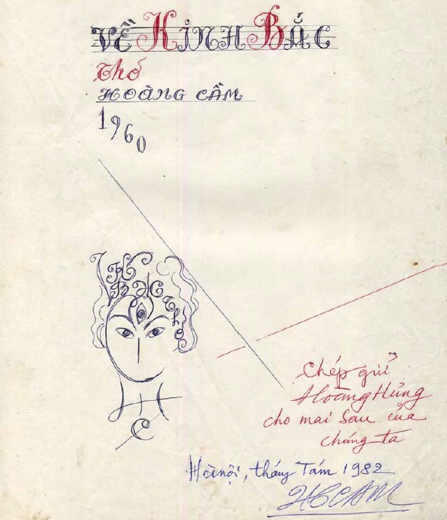Những bài thơ trong tập Đường Về Kinh Bắc của Hoàng Cầm được phổ nhạc thành Hoàng Cầm Ca vẫn còn buồn rười rượi vì nó phản ảnh một miền của đất nước Việt Nam vào những năm 60-70 nhưng nó chứa đựng quá nhiều hương vị quê hương nên nó là liều thuốc an thần cho bản thân tôi sau khi tôi bị đắm chìm vào không khí chết chóc gây nên bởi thơ Nguyễn Chí Thiện (ngục ca) hay nhạc Hà Thúc Sinh (tủi nhục ca). Tôi cũng nghĩ rằng: là một người luôn luôn có phản ứng trước nghịch cảnh, tôi không nên tự đầy đọa tôi hay khuyến khích người nghe đi vào ngõ bí là sự thù hận, oán ghét, chửi rủa. Chắc chắn Đường Về Kinh Bắc (nghĩa là đường về quê cũ) giúp tôi có một lối thoát”.