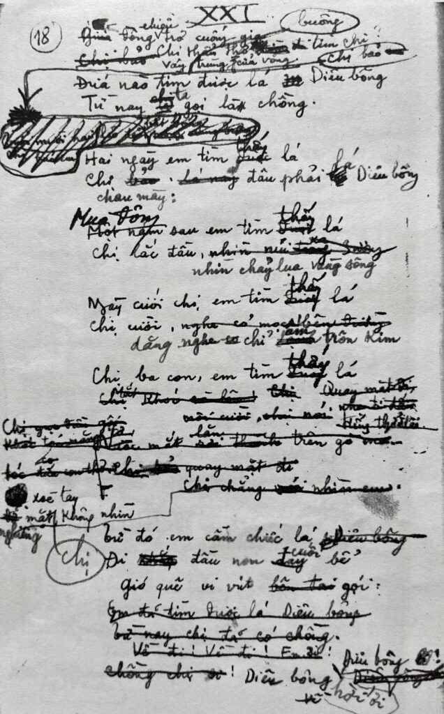 Trong những ấn phẩm đã xuất bản sau “Đổi mới”, Hoàng Cầm tâm sự rằng bài thơ viết về mối tình “chị-em” đơn phương vô vọng của tác giả lúc 12 tuổi với cô gái cùng làng tên là Vinh 20 tuổi. Nghe nói, năm 1988 Hoàng Cầm vào Sài Gòn lần đầu tiên sau khi ra tù, bà Vinh có đến dự đêm Thơ Hoàng Cầm ở Nhà Văn hoá Quận 1 nhưng không ai biết (?). Tác giả cũng khẳng định “Diêu bông” là thứ lá huyền thoại mà mình sáng tạo ra.