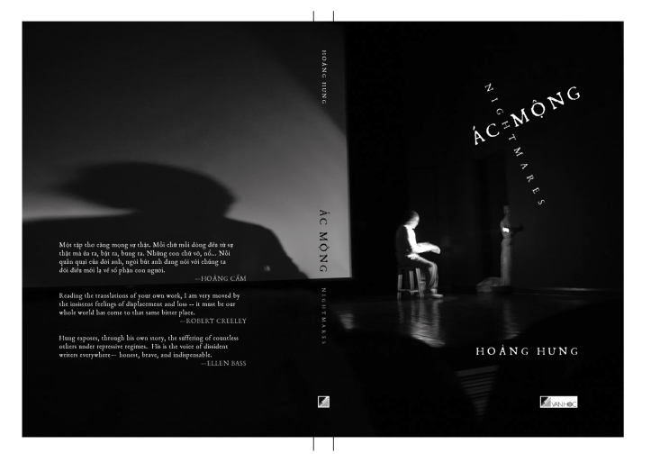 Bìa tập thơ rất ấn tượng: theo gợi ý của tôi, nhà thiết kế bìa Bùi Nam lấy tấm ảnh mà hoạ sĩ Hà Thế Hiển, bạn học Mỹ thuật của con gái tôi – Hoàng Ly, chụp cảnh tôi ngồi đọc thơ trong bóng đêm.